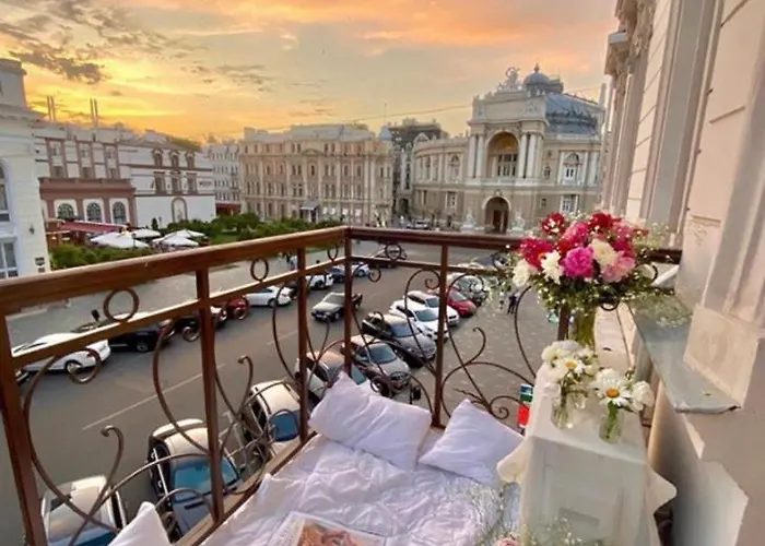 オデッサ都市庭園から800メ-トル以内のオデッサの中心部に位置するEkaterina - Odessaアパ-トはサンデッキ,サンテラスとアレルギ-対応の部屋を提供します. ポチョムキンの階段から乗車して5分がかかります.
